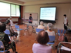 流合先生から、正しい姿勢を保つために大切な「首」と「腰」について学びました。 日常生活の習慣や癖、運動不足などが原因で姿勢が悪くなるそうです。姿勢を良くするためのストレッチと運動(筋トレ)を教えていただきました。 |